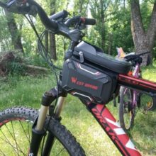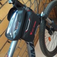 Overall it’s a great idea! I have a 26” mountain bike and I’m 5 8”. When I ride my knees hit the sides of the pouch. It’s also difficult to see the screen of your phone while riding.
